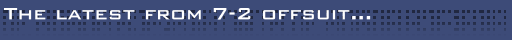 Welcome to the shiny bright lights that is the home to 7-2off. First time visitor? Go here and read all about us. This page is for those lazy regulars who quite frankly can't be arsed trying to navigate their way round the site to find out what's happening Lazy arses.