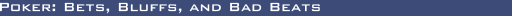 Read any poker books lately? Are you good with words? Do you hanker after instant immortality and are willing to work for free? GREAT! Email me your book reviews and if they're any good I'll stick 'em up on the site here for all to see, discuss and enjoy. I can't promise to pay you any money (Bland has all mine) but you will get a credit at the foot of your review. Lots of the books below still need reviews, so let's be having them, and be as close to the bone as you like. I'll upload any old bollocks, me. Publish & be damned!