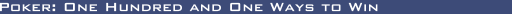 Am I the only guy out there who thinks that Andy Nelson rocks? Answers on a postcard please. There are stacks of poker books out there dealing with statistics, starting hands and fancy pants squeeze plays. What this book focuses on, though, is pure gold. Filled with short, easy to read essays on a multitude of important poker topics including emotional control, patience and attitude, 101 Ways to Win translates many of the finer points of the game into a readily understandable, accessible language that even I could get to grips with. Go figure. Good luck finding one of his books in print over here by the way. I had to get mine sent over The Pond at truly exorbitant cost, but it was worth every red cent, dammit.