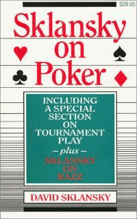 Considered by many to be the best book ever written on poker. Did you get that? The Best Book Ever Written on Poker. Ever. That means it's required reading people! I would go one step further and say that this is not so much a book that should be read so much as studied. Be warned, though, it's not for complete newcomers to poker or anyone looking for a quick lesson in the rudiments of the game. It's aimed at those who are looking to become serious (and I don't mean po-faced and dour) poker players, or anyone aiming to better their game substantially. Offering insight into each and every factor a player must consider during a hand, Sklansky goes through every aspect of the game thoroughly, delving into game theory as well as examing the thought processes of the more advanced players. Buy it.