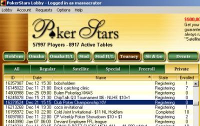 In order to play you’ll need to download the poker software from Pokerstars and register. You can find the games by looking under ‘tournaments’ and ‘private’ and looking for the letters 'CPC' or 'Club Poker Challenge' and some roman numerals.