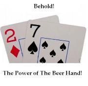 Second hand in, I'm in the Big Blind and peer down at my hole cards and Get The Camera what-do-we-have-here? You guessed it - 7c, 2d - THE BEER HAND! So soon? Clearly some sort of sign from the Man upstairs! Vincent and Barny both limp, Nick completes from the SB and I decide to just check (I didn't particularly want to stand a re-raise if someone had thought I was on a steal, and who knows what the magical flop will bring?). All extremeties are crossed...