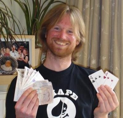 The - erm - 'magical' flop brought a 10s, a 4c and a Js - it completely missed me anyway. It gets checked to me by Nick and I bet the pot, 200. Vincent folds, Barney calls (Eep - I'm screwed!), and Nick folds. Just me and Barny, then. They come and shoot our hole cards.