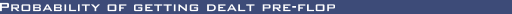 | Hole cards | % Chance | Probability | Odds Against | | The Beer Hand, 7-2 offsuit | 0.9% | 1 in 111 | 110 : 1 | | AK suited | 0.3% | 1 in 338 | 331 : 1 | | AA | 0.45% | 1 in 221 | 220 : 1 | | AQ or AJ suited | 0.60% | 1 in 166 | 165 : 1 | | AK offsuit | 0.9% | 1 in 111 | 110 : 1 | | AA or KK | 0.9% | 1 in 111 | 110 : 1 | | Any premium pr - KK, QQ or JJ | 1.36% | 1 in 74 | 73 : 1 | | Any premium pr - AA, KK, QQ, JJ | 1.80% | 1 in 56 | 55 : 1 | | AQ or AJ offsuit | 1.81% | 1 in 55 | 54 : 1 | | Any 2 cards Jacks or better | 9.00% | 1 in 11 | 10 : 1 | | Any 2 suited connectors | 2.11% | 1 in 48 | 47 : 1 | | Ax (T or less) suited | 2.71% | 1 in 37 | 36 : 1 | | Any pair | 6.00% | 1 in 17 | 16 : 1 | | Any 2 offsuit connectors | 6.33% | 1 in 16 | 15 : 1 | | Ax (T or less) offsuit | 8.14% | 1 in 12 | 11 : 1 | | Any Ace | 16.00% | 1 in 6 | 5 : 1 | | Any 2 suited cards | 23.53% | 1 in 4 | 3 : 1 | | Any hand containing a pair or Ace | 20.36% | 1 in 5 | 4 : 1 |