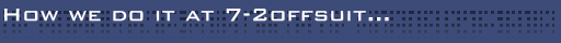 Isn't that enough? I hope the above is of some help to you. If not, I've just wasted an afternoon which I could have easily spent watching pirated DVDs. Ho hum. The only other things you should keep in mind when running your game are that if you're ever playing with me I only go all-in with Aces or The Hammer. If we're involved in a hand and I go all-in at any stage by all means fold, unless of course I *wink* at you, in which case you should obviously call without hesitation. Eye thankew. See you at the tables.