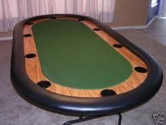 The best cloth I've found is a dark-green professional poker canvas - cards just glide across it! It's much more hard-wearing than billiard cloth and baize and it doesn't have the 'bobble' effect of cheaper woollen cloths. The same stuff they used in the WPT - get it here.