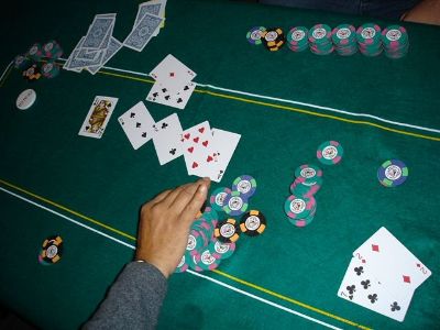 The cash game is table stakes. This mean that you can only bet with the chips you have in front of you at any given time and only win an equivalent amount from your opponents. You cannot lose a pot because you have insufficient chips to call someone's bet (that only happens on the telly). No house deeds, gold teeth or car keys being thrown in! This is of course because everyone I play with earns far more than me (and has nicer cars!) and it's the only way I can put us on a level playing field. It also means you're not allowed to take any chips off the table unless you are leaving the game. This gives any opponents who may be stuck (i.e. me) a chance to win back what they have lost to you. If at any point in the game you lose all your chips, you may buy back in for at least the table minimum (a Lady Godiva) or of course walk to the bus stop.