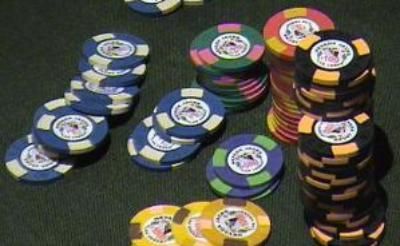 In the cash games most hosts operate with a £5 minimum buyin, and in order to keep things nice and simple £5 buys you $2,500 in chips. In the cash game each chip has cash value, so a $25 chip is worth a gargantuan 5p, a $100 chip is worth a rather intimidating 20p, a $1000 chip £2 and so on. A fairly typical chip split for £5 is shown below, but if in doubt just ask the host.