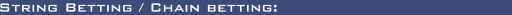 This one really gives me the hump, because I see it so often. A string bet is when you appear to be simply calling a bet, but then you reach back for more chips to make a raise. It can cause other players to react and give away information providing an unfair advantage to the bettor and other players still in the hand, and for this reason we don't allow it. Put simply, if you have put chips out on the table, you cannot go back to your stack to get more. If you always declare "call" or "raise" as you bet, you will be immune to this problem. If you announce "raise" you can then take all the time you want counting out your chips (and checking out your opponent) before announcing the amount you intend to raise and moving your chips forward over the old 'imaginary line'.