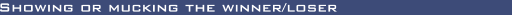 If you are the loser at a showdown there is no need for you to show your cards unless you want to, or unless your opponent has a very large baseball bat. If you are the winner of an uncontested hand (i.e. everybody folds to your bet) there is likewise no need for you to show your cards unless you really, really want to show off. If, however, you win at the showdown you MUST show your cards to all players present, not just flash them to the other player(s) contesting the pot with you. Show them winners!
