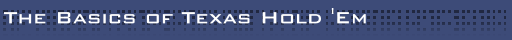 Texas Hold 'Em is the version of Poker played in many casinos, and seen on the Challenge TV's World Poker Tour and The World Series of Poker. We play No Limit Texas Hold 'Em, viewed by many as being 'the cadillac of poker'. It's called 'No Limit' because there is NO LIMIT to the amount a player can bet when it is his/her turn to 'act'. At any point a player may declare themselves as being 'All In' and move all the chips they have in front of them. These are the basic rules for No Limit Texas Hold 'Em Poker.